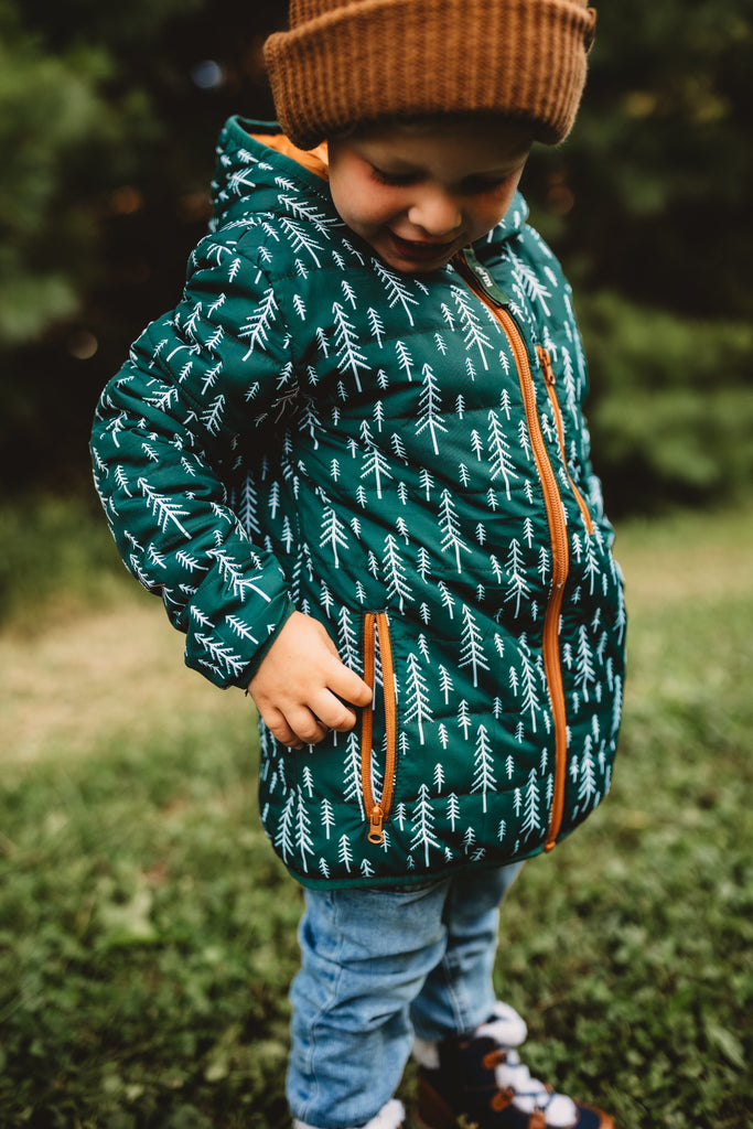 Experience twice the style and comfort with the In The Trees Reversible Puffy Jacket! This lightweight, packable jacket offers warmth and coziness whether you wear it inside out or right side out. Equipped with convenient pockets and a snug hood, it's designed to keep you comfortable on all your outdoor adventures. Crafted from durable 100% nylon fabric, it resists the elements while remaining breathable. Perfect for layering or wearing solo, this jacket is your go-to companion when you want to stay playful and prepared in any weather.